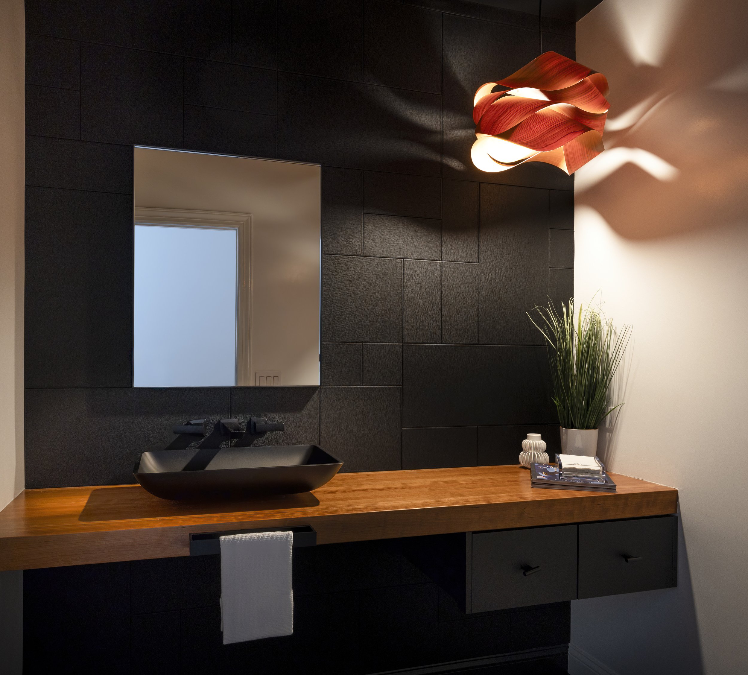 A powder room is a great place to explore color, especially deeper tones. Saturated hues can make the room feel like a jewel box, while tonal papers can bring texture and softness without overwhelming the space.